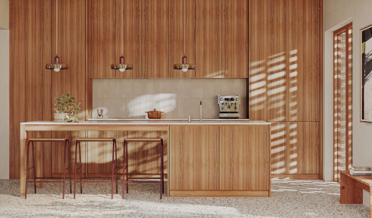 Door het prachtige interieur krijgt wonen een andere dimensie. Een dimensie waarin het warme hout en de terrazovloer hun eigenheid behouden en de basis vormen van een echte thuis.