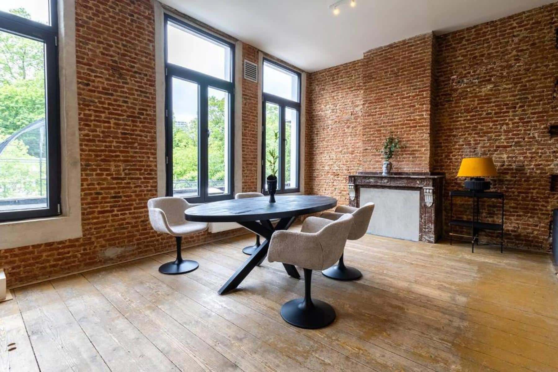 Bij het betreden van het appartement word je begroet door een eigentijdse en ruime woonkamer, voorzien van ramen die overvloedig natuurlijk licht binnenlaten. Waar een harmonieus samenspel van eigentijds design en een warme, bakstenenlook een unieke leefruimte creëert.