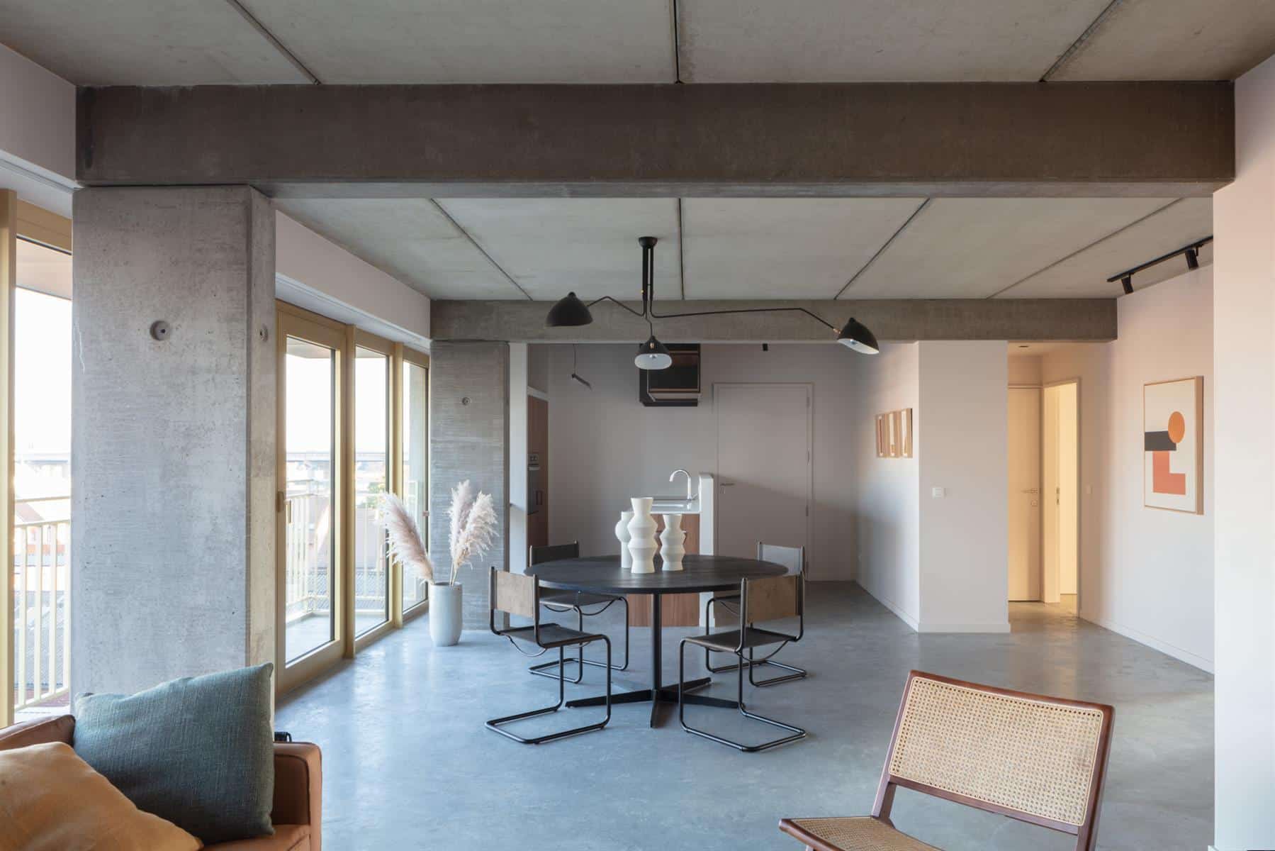 De appartementen van “Koning Noord” zijn rond een mooie groene binnentuin gebouwd en bieden door de ruime glaspartijen veel natuurlijk lichtinval. De betonnen structuur van het gebouw, de warme kleuren en de houten elementen in het appartement vormen een spannende combinatie en zorgen voor een “wow-effect”.