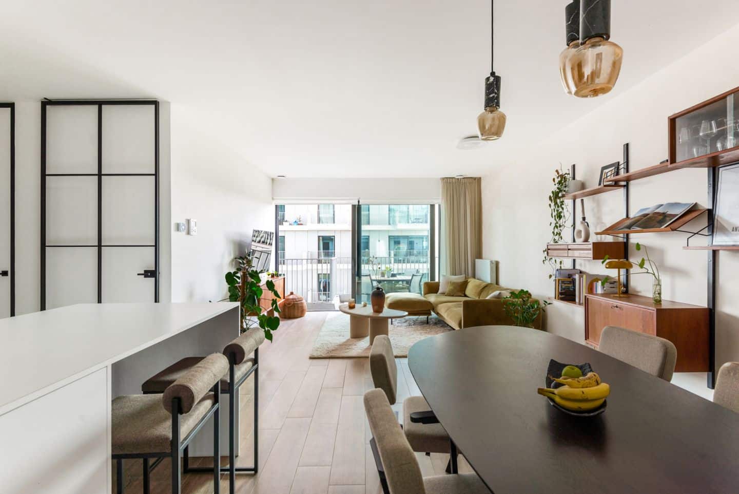Welkom op de zesde verdieping van Residentie Louise Marie in de Karel Oomsstraat waar stijl, comfort en locatie moeiteloos hand in hand gaan. Denk: twee slaapkamers, een volledig uitgeruste keuken (inclusief kookeiland, voor je innerlijke Ottolenghi…), een ruime leefruimte met instant zen-gevoel en een royaal, doorlopend terras. Hier lees je ’s morgens in alle rust je krant en schuif je ’s avonds moeiteloos de apéro op tafel genietend van de avondzon.