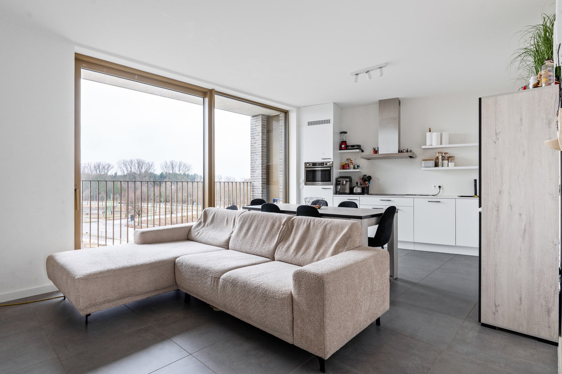 Dankzij de brede raampartijen geniet je hier van een open en luchtig gevoel, met volop natuurlijk licht doorheen de dag. Het westgericht terras vormt dé ideale plek om te ontspannen na het werk, te genieten van lange zomeravonden of simpelweg weg te dromen bij de ondergaande zon. Bovendien kijk je (binnenkort) uit op het nieuwe park, wat zorgt voor een groen en rustgevend uitzicht vlak bij huis.