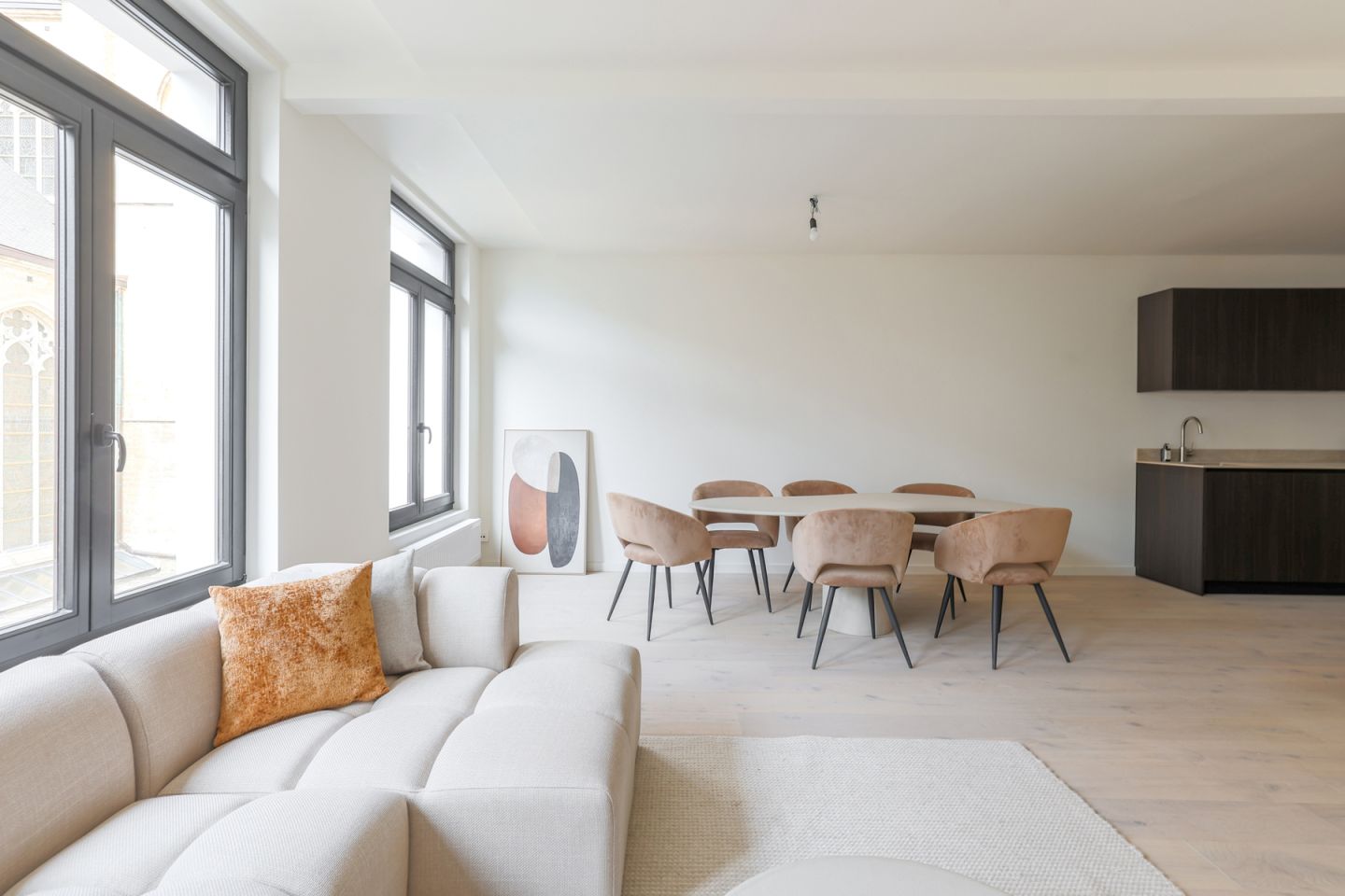 Tussen het gezellige Muntplein en de Nationalestraat, verscholen in het hart van Antwerpen, vind je dit volledig vernieuwde appartement op de tweede verdieping van een indrukwekkend burgerhuis.