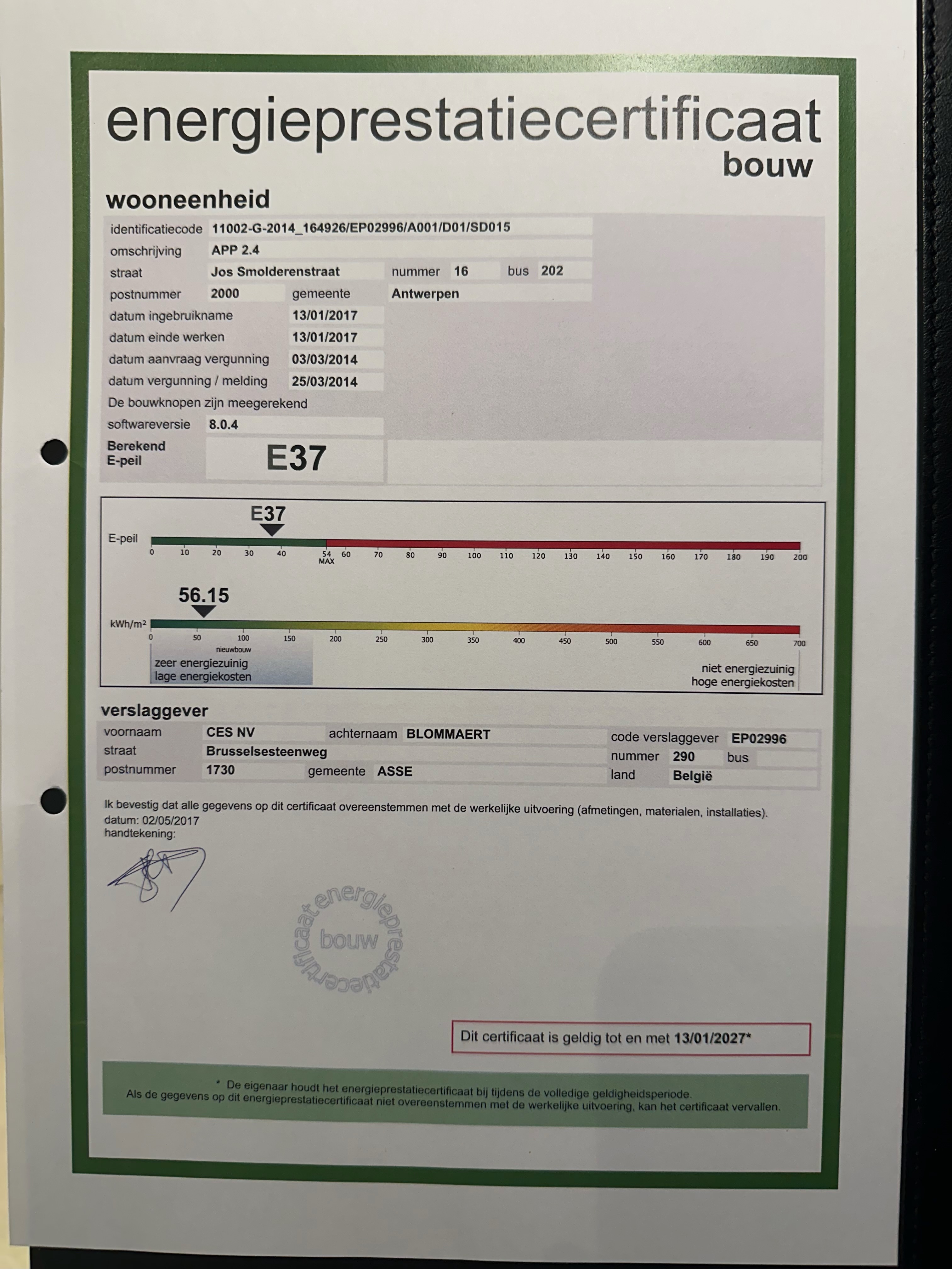 Tevens is er een parkeerplaats beschikbaar (MET laadpaal!) in parking Green Desk of Scheldekaaien. Deze kan aangekocht worden voor de prijs van 39.000€