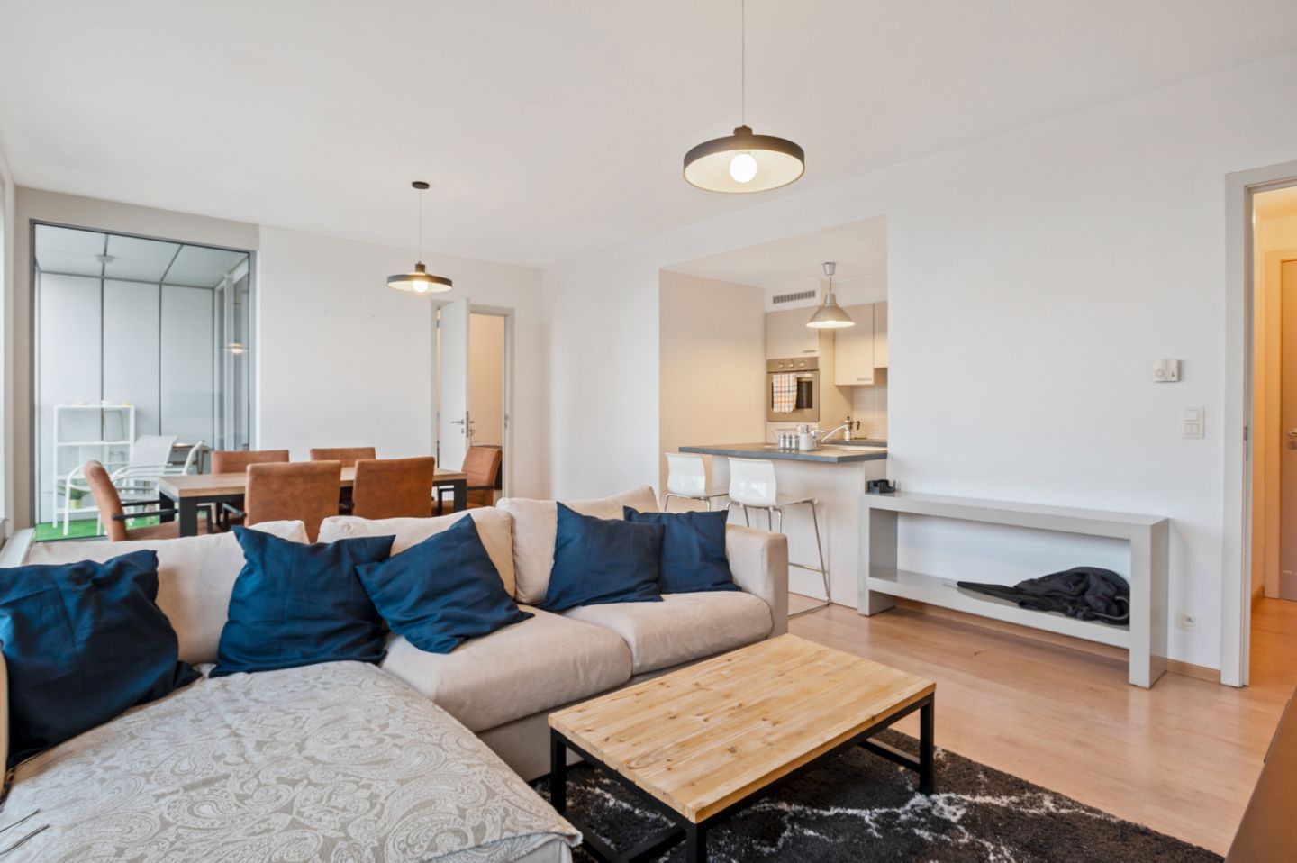 Bij het betreden van dit eigentijdse appartement word je verwelkomd door een zee van natuurlijk licht dat door de grote ramen stroomt. De open plattegrond benadrukt de ruimte, waardoor een naadloze stroom tussen de woonkamer, eetkamer en keuken ontstaat. De keuken is uitgerust met apparatuur en klaar voor de thuischef.