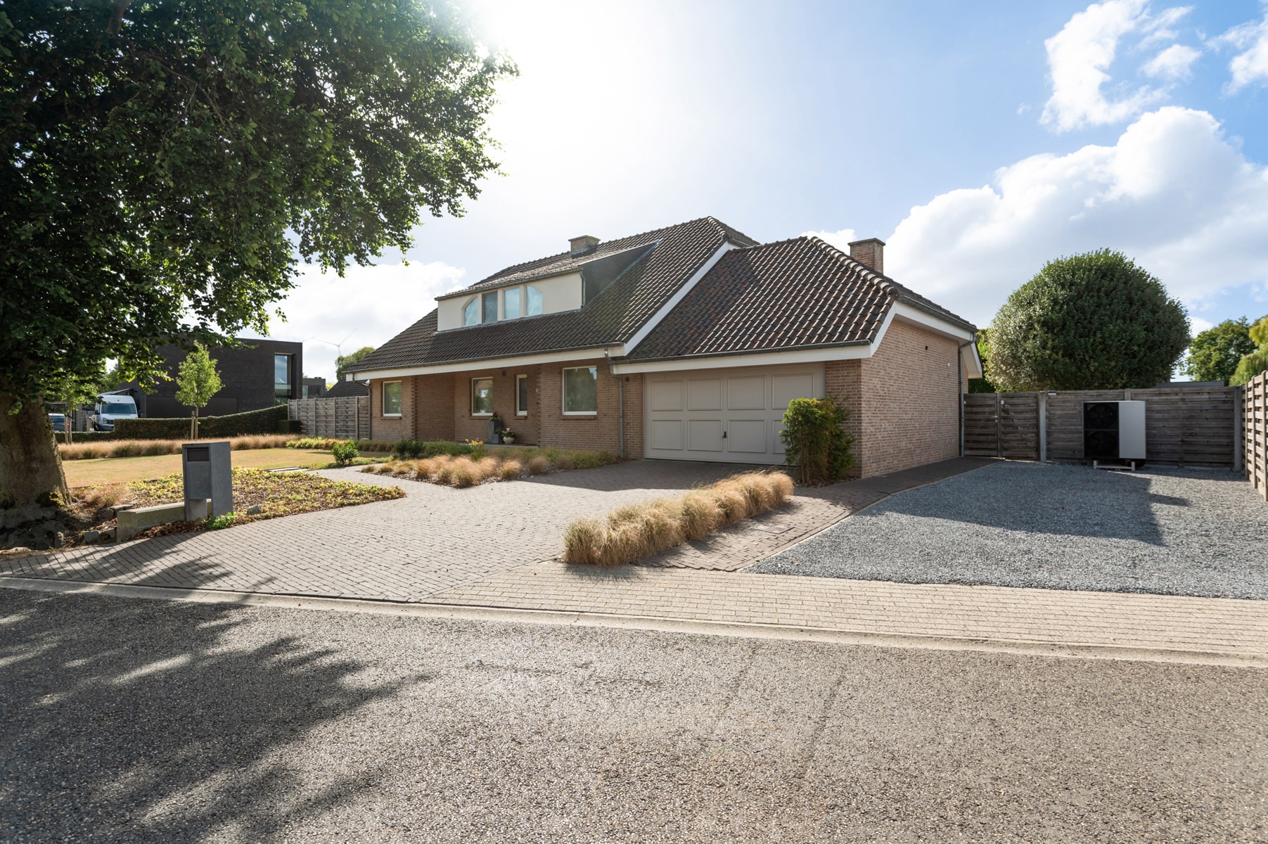 Praktisch comfort wordt verzekerd door de dubbele garage, de wasberging en een extra bergruimte boven de garage. Buiten geniet je op het zonnige terras, de perfecte plek om even tot rust te komen.
